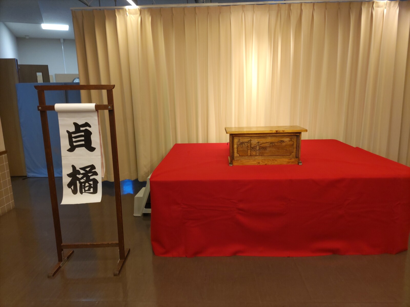 椅子4つの客席に相対する伊織さんは、インカムを着けて釈台代わりの折りたたみスタンディングデスクの後ろに立つ。