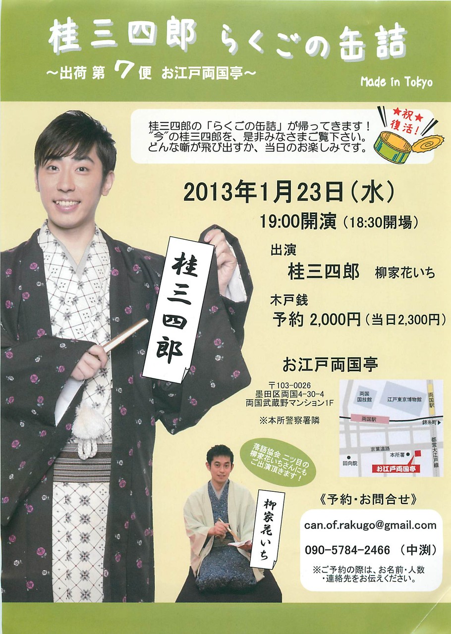 [落語会情報]らくごの缶詰 桂三四郎 2013/01/23