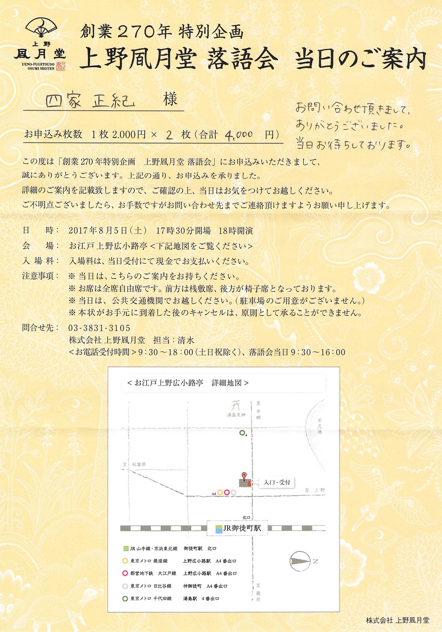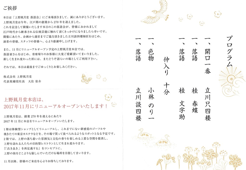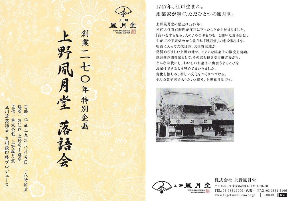 史上最強の豪華さ!! 創業二百七十年上野風月堂落語会 文字助・談四楼・春蝶・のり一 2017/08/05
