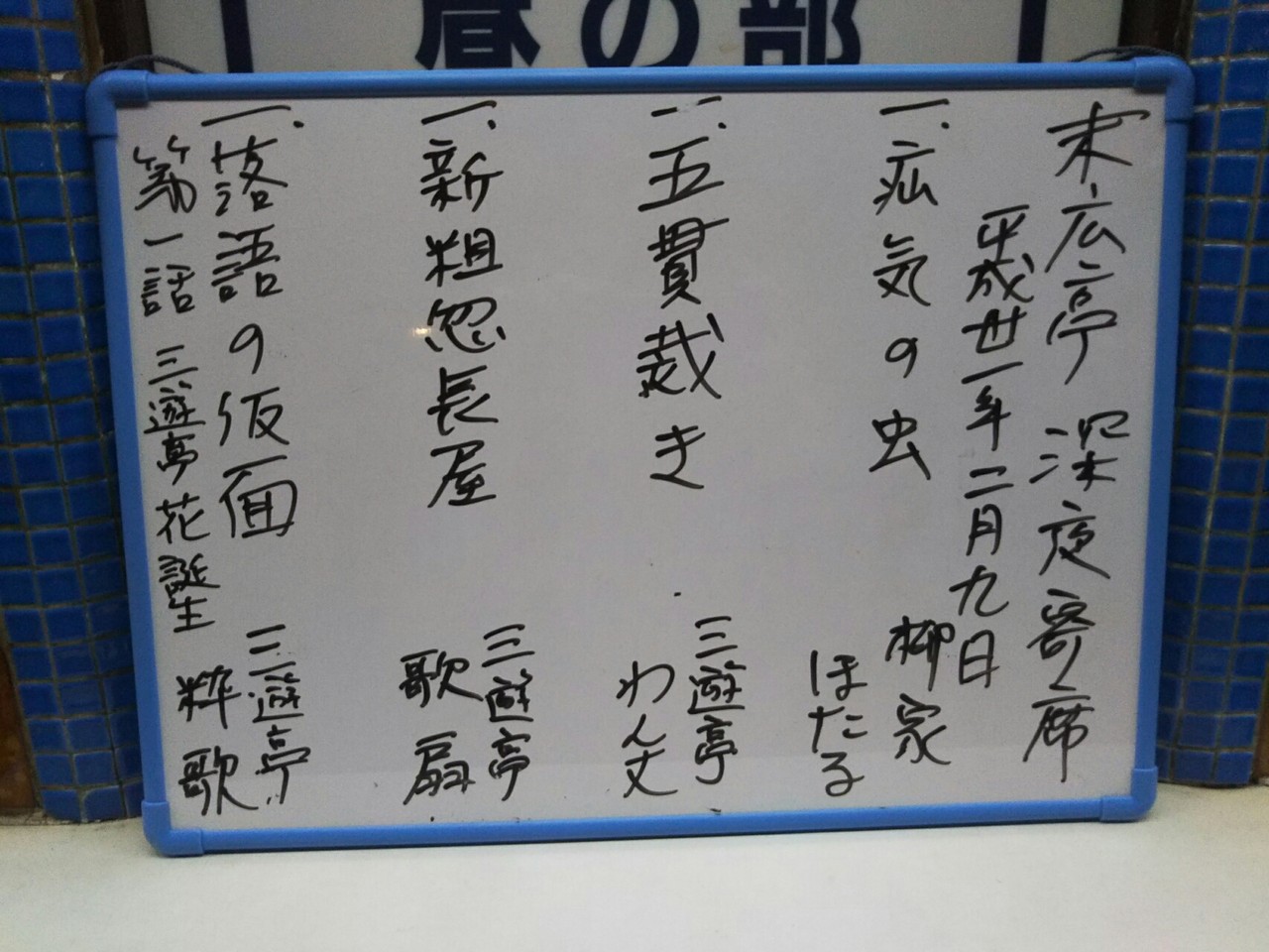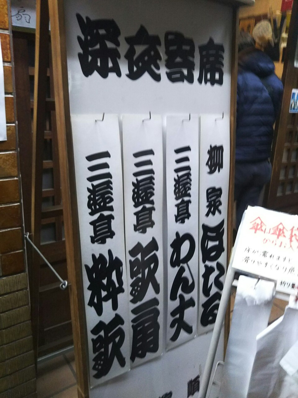 ものすごく久しぶりにレギュラー深夜寄席。シェアする落語出演者がお二人も出るし、寒いからそんなに混んでなさそうだし。まあ結局、開演前にはかなり埋まってましたが。