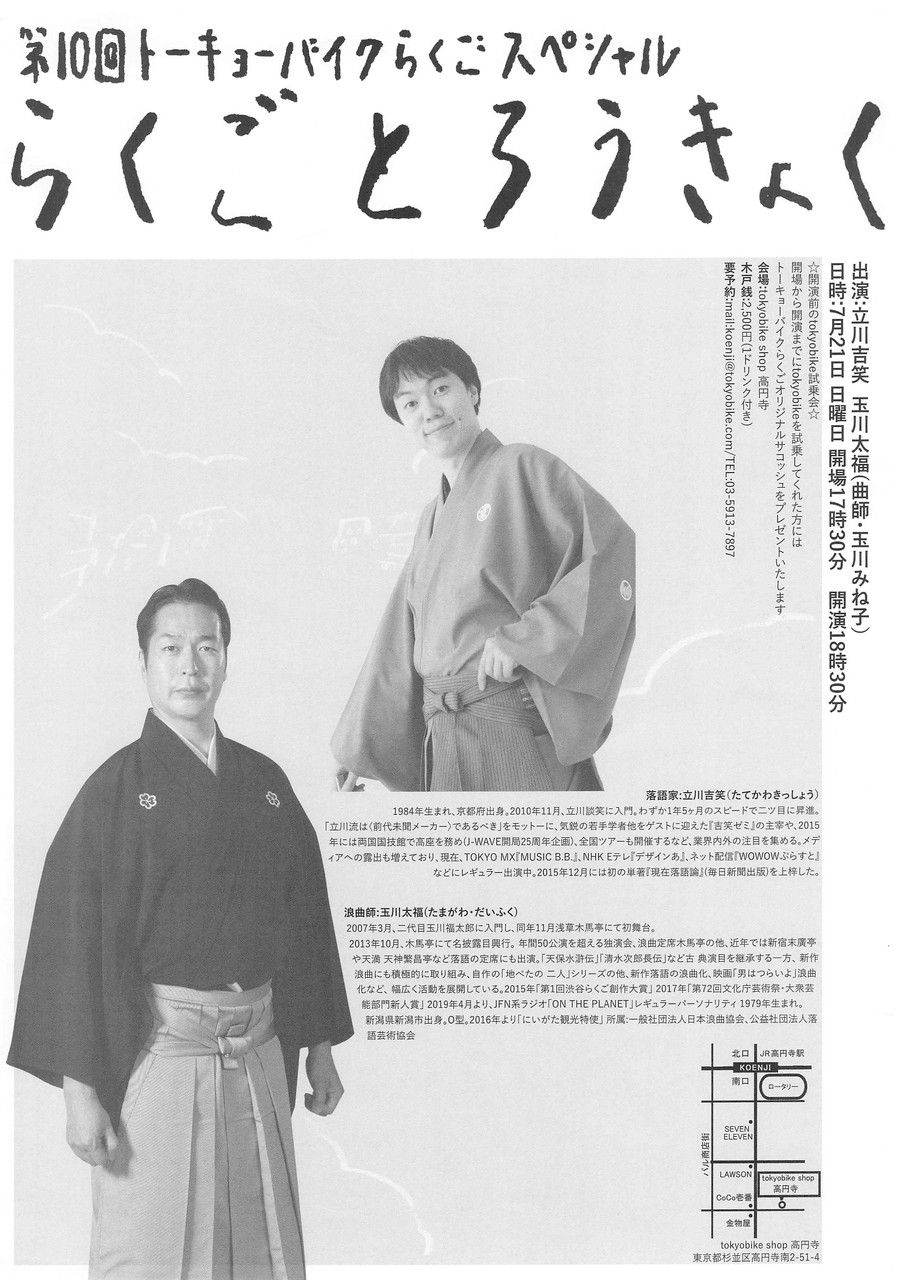 二人の自転車好き トーキョーバイク寄席第10回 吉笑 太福 2019/07/21