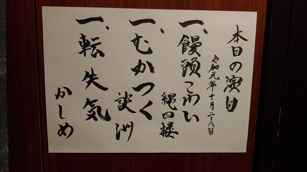 ワロス亭落語会 『第33回 立川流前座勉強会』2019/10/28