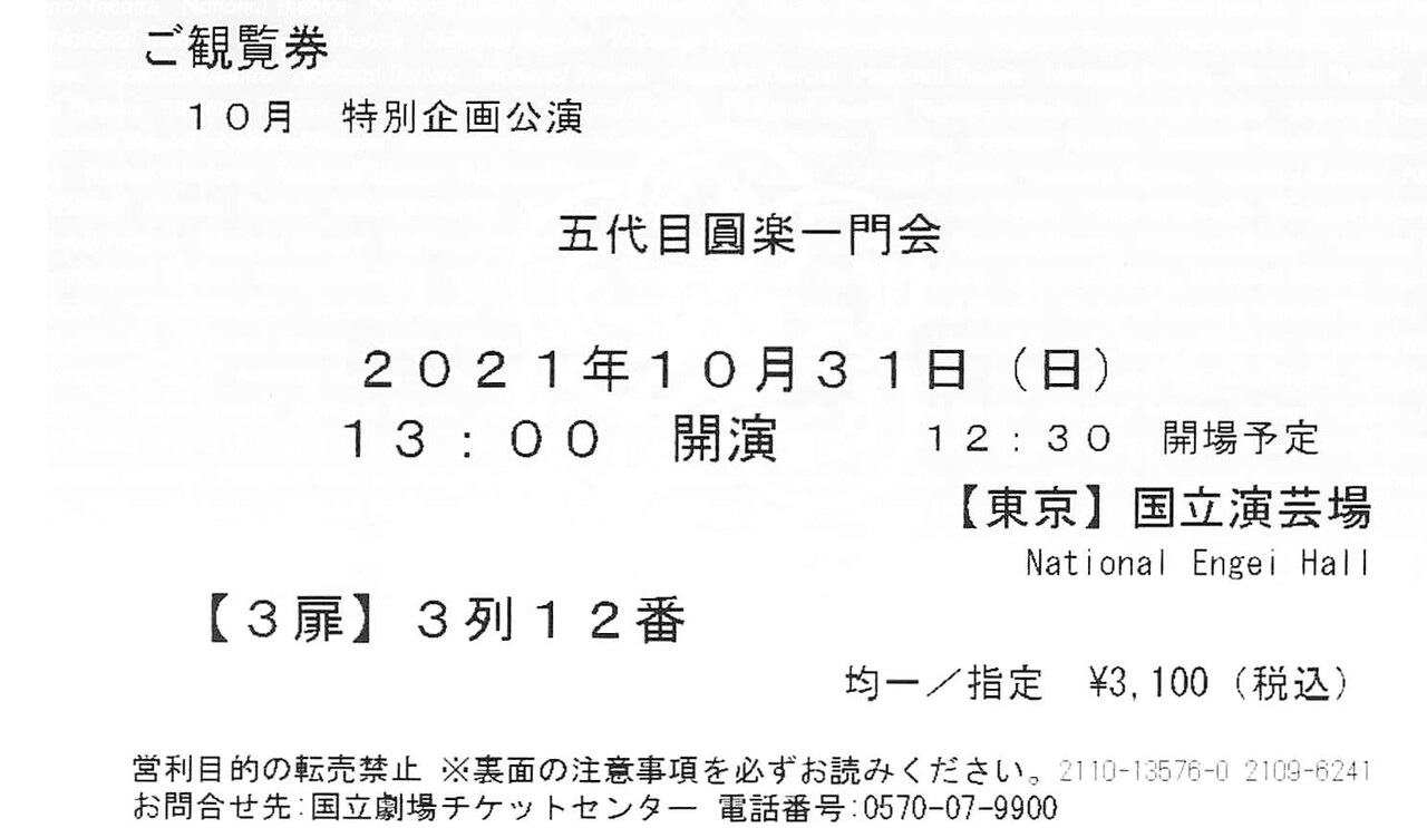 深まる秋、そぼ降る雨。久しぶりの国立演芸場に主任:三遊亭圓橘を聴きに。