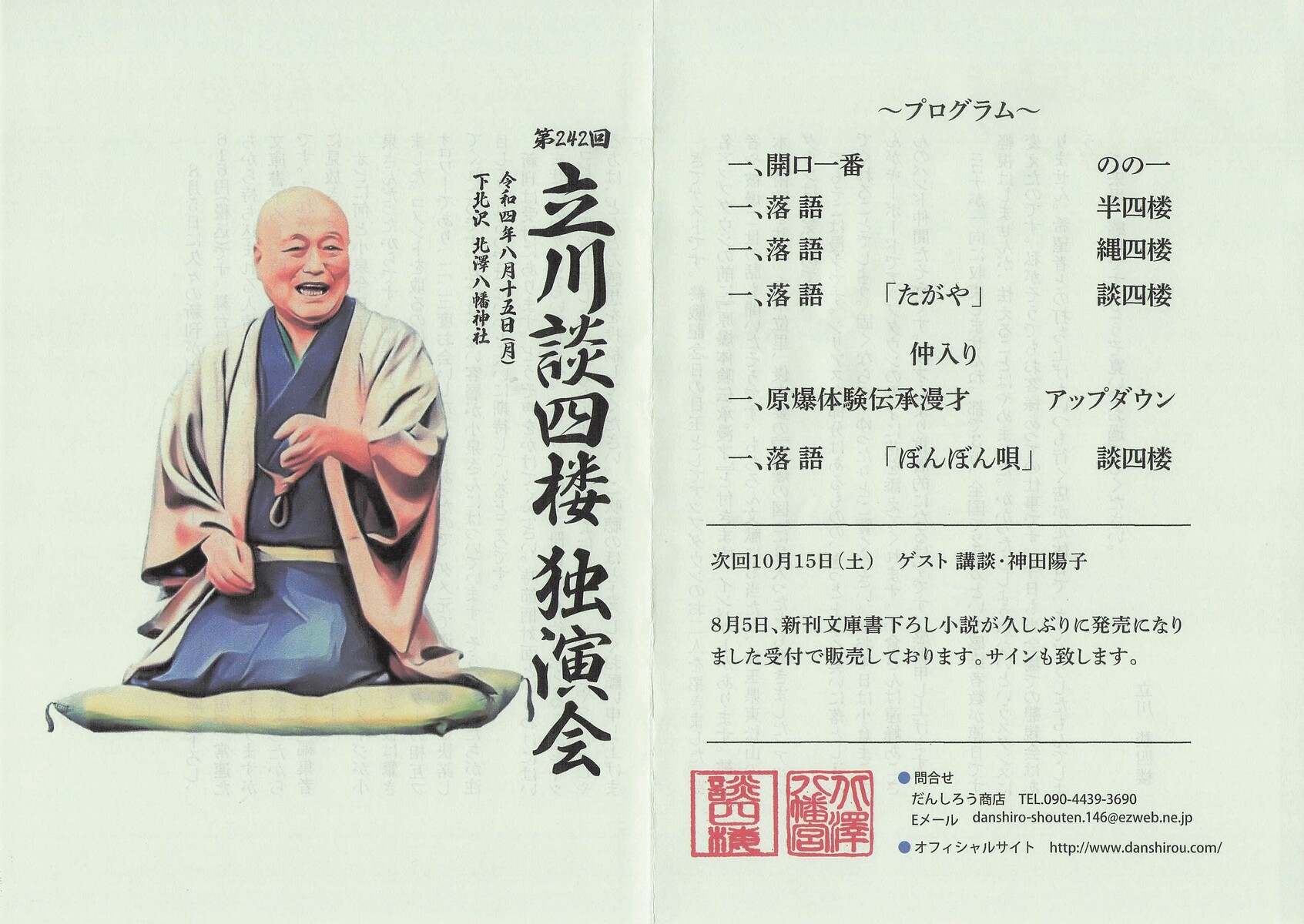 今年もまた『一回こっくり』に涙 第242回立川談四楼独演会 22/08/15