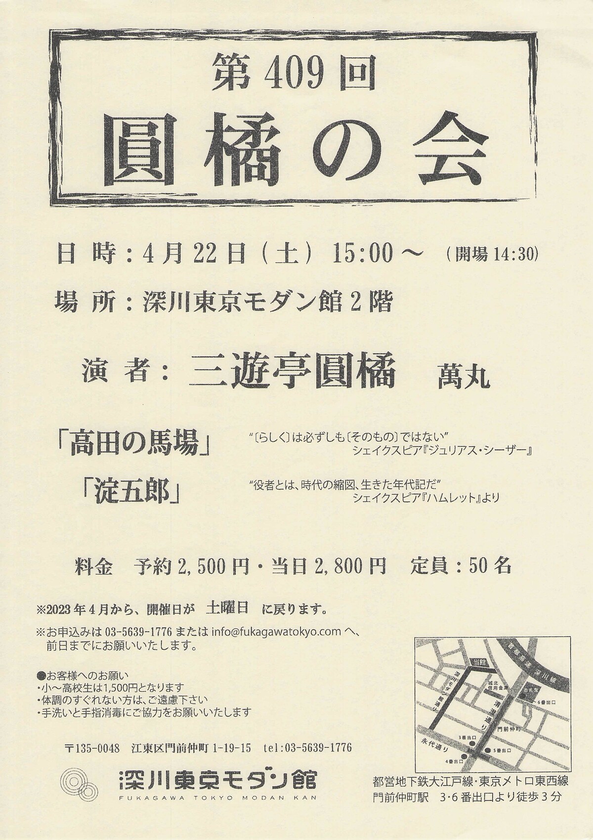次回は4/22 「高田の馬場」「淀五郎」ですよ。